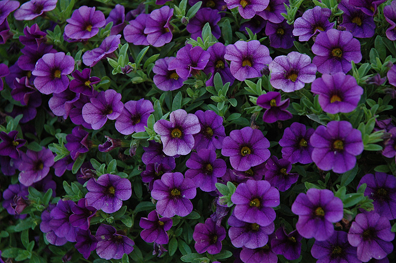 Cabaret® Deep Blue Calibrachoa will grow to be about 10 inches tall at maturity, with a spread of 18 inches. When grown in masses or used as a bedding plant, individual plants should be spaced approximately 12 inches apart. Its foliage tends to remain low and dense right to the ground. This fast-growing annual will normally live for one full growing season, needing replacement the following year.