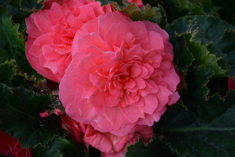 A spectacular upright begonia presenting lovely dark, heart-shaped foliage; large, colorful double blooms are produced throughout the season; grows well in hot and humid conditions; great for containers, hanging baskets or garden landscapes