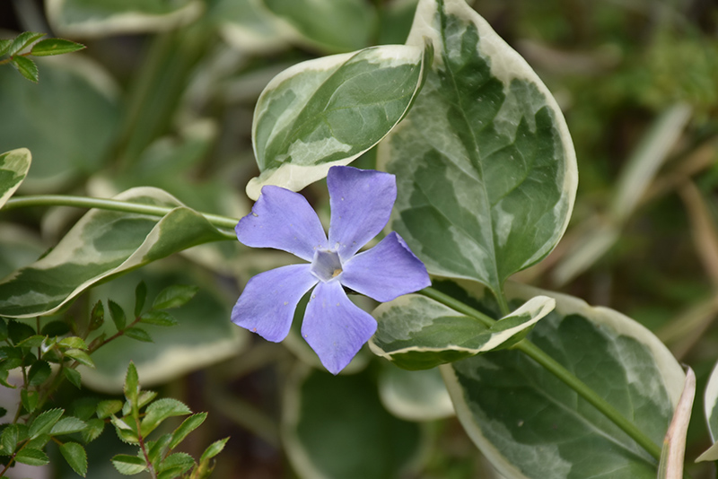 Variegated Periwinkle has masses of beautiful lavender flowers with blue overtones along the stems from mid to late spring, which are most effective when planted in groupings. Its attractive glossy oval leaves remain dark green in color with distinctive creamy white edges and tinges of white throughout the year.