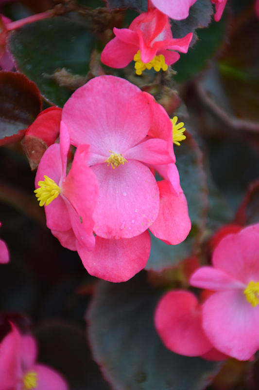 Bada Boom® Rose Begonia features dainty rose orchid-like flowers with yellow throats at the ends of the stems from mid spring to mid fall. Its attractive succulent heart-shaped leaves remain dark green in color with hints of coppery-bronze throughout the year.