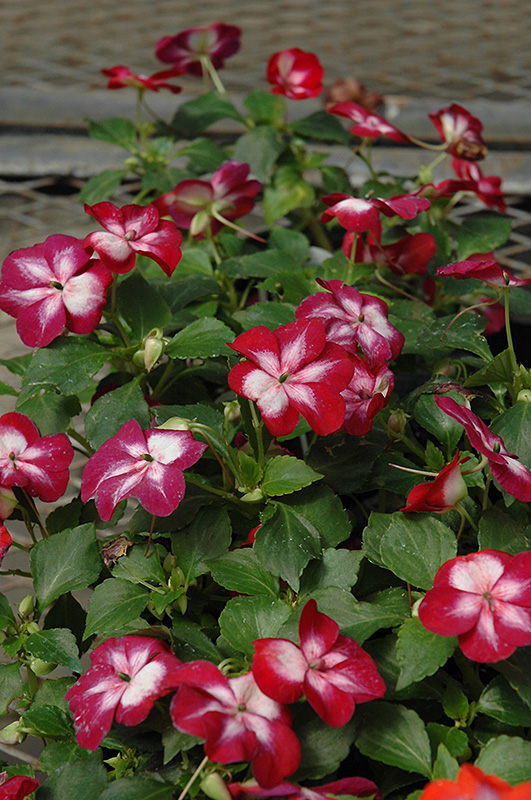 Patchwork™ Cosmic Burgundy Impatiens is a fine choice for the garden, but it is also a good selection for planting in outdoor containers and hanging baskets. It is often used as a 'filler' in the 'spiller-thriller-filler' container combination, providing a mass of flowers against which the thriller plants stand out. Note that when growing plants in outdoor containers and baskets, they may require more frequent waterings than they would in the yard or garden.