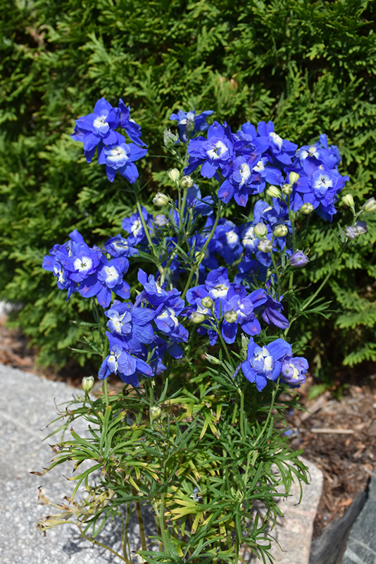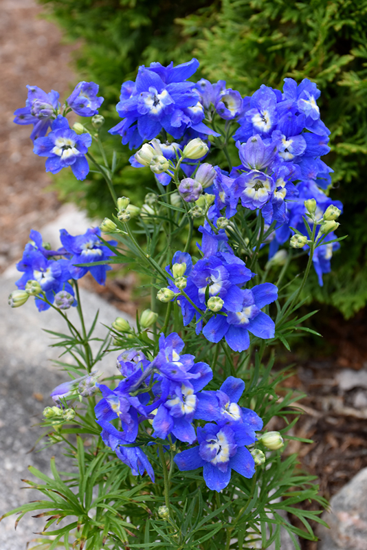 Summer Cloud Delphinium has masses of beautiful panicles of royal blue flowers at the ends of the stems from early to late summer, which are most effective when planted in groupings. The flowers are excellent for cutting. Its ferny compound leaves remain dark green in color throughout the season.
