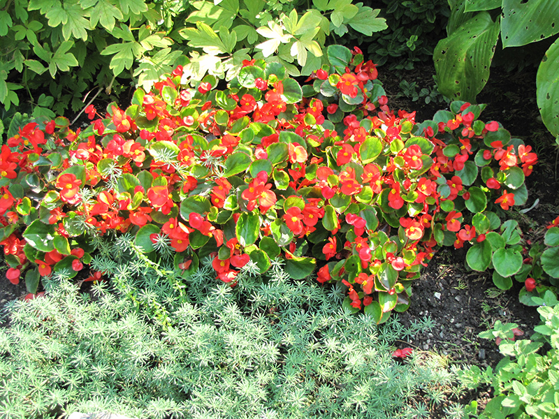 Bada Bing® Scarlet Begonia is an herbaceous annual with a mounded form. Its medium texture blends into the garden, but can always be balanced by a couple of finer or coarser plants for an effective composition.