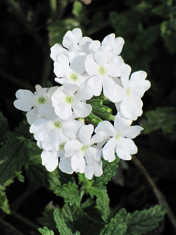 Quartz XP White Verbena will grow to be about 8 inches tall at maturity, with a spread of 12 inches. When grown in masses or used as a bedding plant, individual plants should be spaced approximately 8 inches apart. Its foliage tends to remain low and dense right to the ground. Although it's not a true annual, this fast-growing plant can be expected to behave as an annual in our climate if left outdoors over the winter, usually needing replacement the following year. As such, gardeners should take into consideration that it will perform differently than it would in its native habitat.