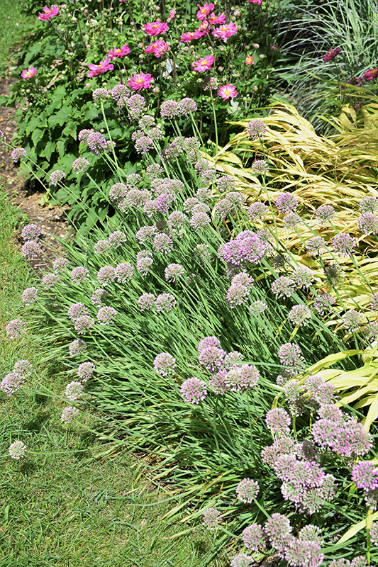 Medusa Ornamental Onion will grow to be about 14 inches tall at maturity extending to 24 inches tall with the flowers, with a spread of 24 inches. When grown in masses or used as a bedding plant, individual plants should be spaced approximately 18 inches apart. It grows at a medium rate, and under ideal conditions can be expected to live for approximately 5 years. As an herbaceous perennial, this plant will usually die back to the crown each winter, and will regrow from the base each spring. Be careful not to disturb the crown in late winter when it may not be readily seen! As this plant tends to go dormant in summer, it is best interplanted with late-season bloomers to hide the dying foliage.