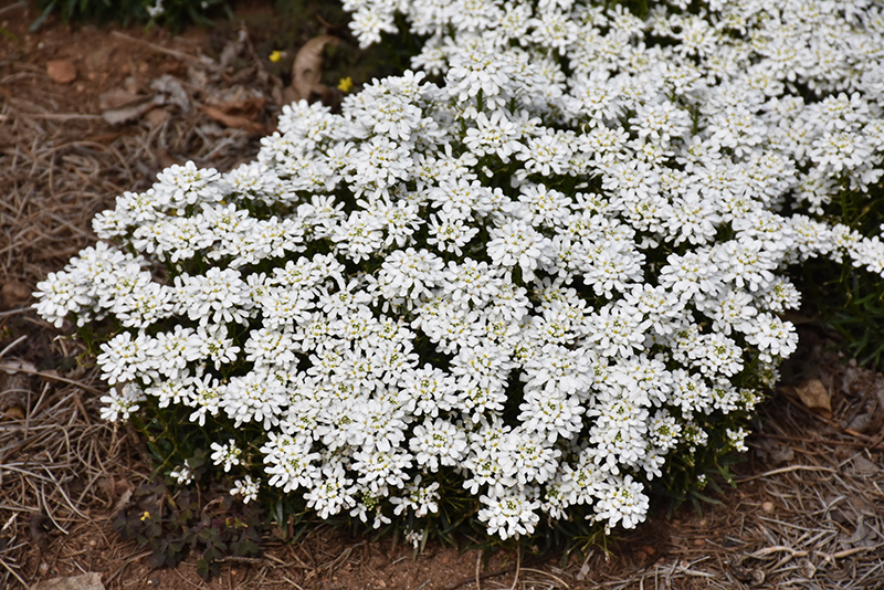 Snowsation Candytuft will grow to be about 10 inches tall at maturity, with a spread of 15 inches. When grown in masses or used as a bedding plant, individual plants should be spaced approximately 12 inches apart. Its foliage tends to remain low and dense right to the ground. It grows at a medium rate, and under ideal conditions can be expected to live for approximately 10 years. As an evegreen perennial, this plant will typically keep its form and foliage year-round.