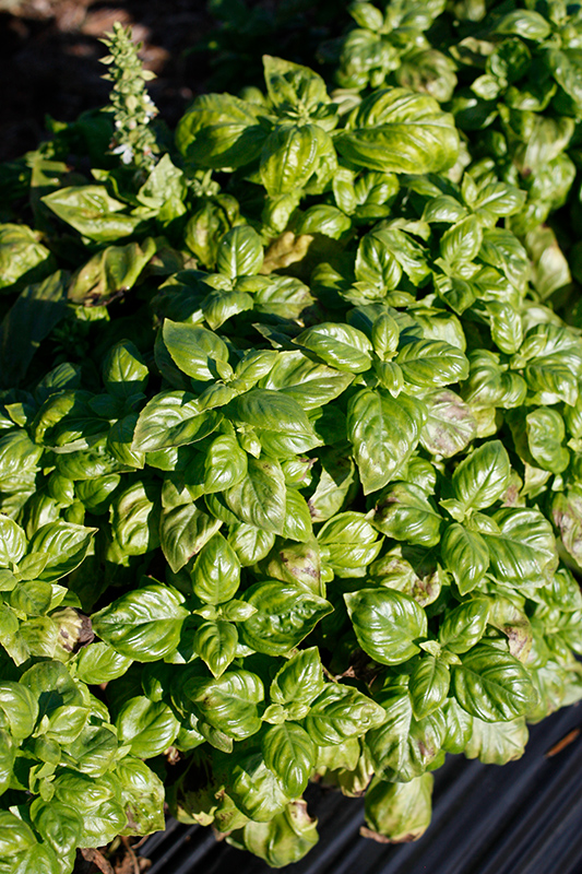 A culinary variety that produces large flavorful leaves on a lush plant; will produce white flowers in summer but is primarily grown for foliage; pinch flower stems to promote leaf growth; great for mixed containers, herb gardens, and annual beds