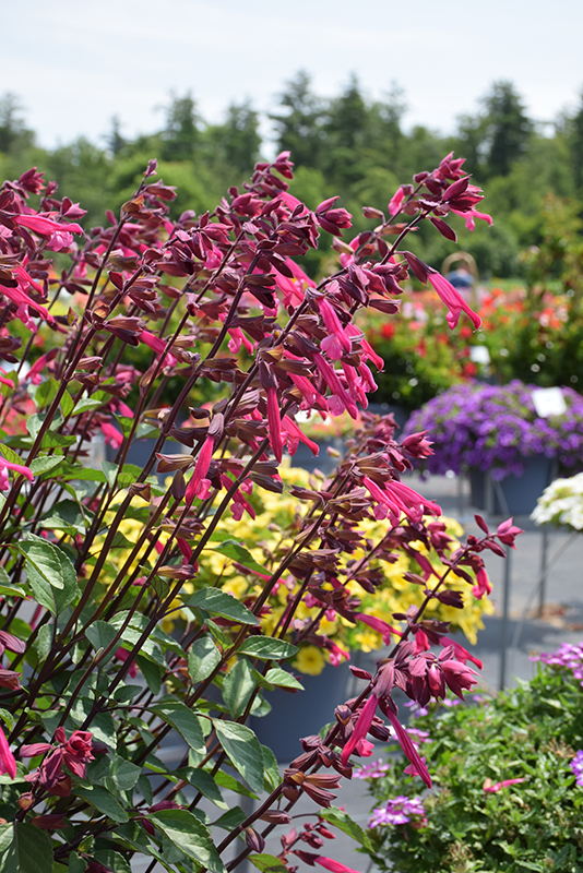 An attractive, well branched salvia producing volumes of tall, sturdy stems covered in big, deep purple-red blooms from late spring into fall; a beautiful addition to borders or beds with its dense and bushy form; looks fantastic in containers