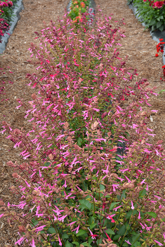 Skyscraper™ Pink Salvia will grow to be about 15 inches tall at maturity extending to 28 inches tall with the flowers, with a spread of 15 inches. When grown in masses or used as a bedding plant, individual plants should be spaced approximately 10 inches apart. Although it's not a true annual, this plant can be expected to behave as an annual in our climate if left outdoors over the winter, usually needing replacement the following year. As such, gardeners should take into consideration that it will perform differently than it would in its native habitat.
