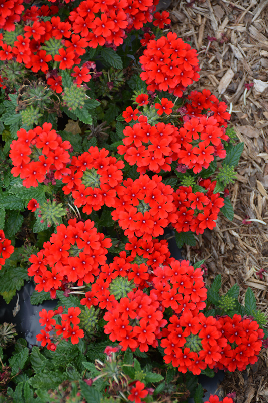 Firehouse™ Red Verbena will grow to be about 10 inches tall at maturity, with a spread of 20 inches. When grown in masses or used as a bedding plant, individual plants should be spaced approximately 16 inches apart. Its foliage tends to remain low and dense right to the ground. Although it's not a true annual, this fast-growing plant can be expected to behave as an annual in our climate if left outdoors over the winter, usually needing replacement the following year. As such, gardeners should take into consideration that it will perform differently than it would in its native habitat.