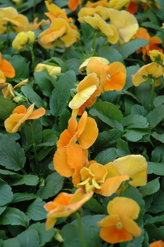 Matrix® Orange Pansy has masses of beautiful orange flowers with yellow eyes and a buttery yellow reverse at the ends of the stems from early spring to late summer, which are most effective when planted in groupings. Its serrated round leaves remain dark green in color throughout the season.