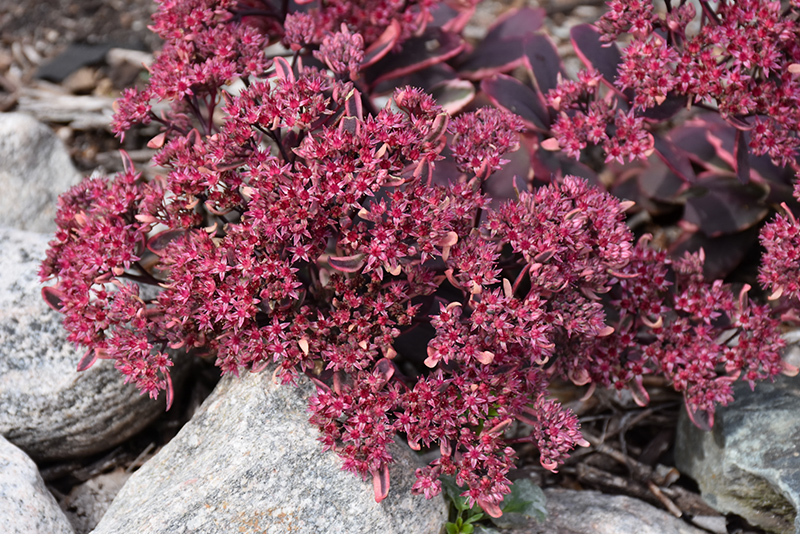 Dream Dazzler Stonecrop is covered in stunning panicles of fuchsia flowers with pink overtones rising above the foliage from early to mid fall. The flowers are excellent for cutting. Its attractive succulent round leaves emerge bluish-green in spring, turning deep purple in color with distinctive hot pink edges and tinges of white throughout the season. The burgundy stems are very colorful and add to the overall interest of the plant.