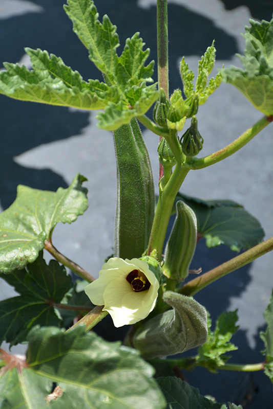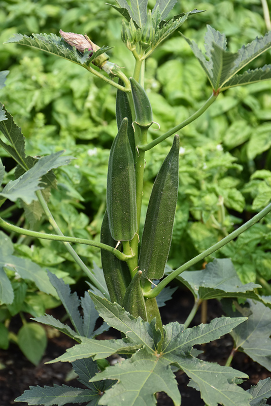 Clemson Spineless Okra is an annual vegetable plant that is commonly grown for its edible qualities. It produces olive green pointy pods which are harvested from mid summer to mid fall. The pods have a mild taste and a crunchy texture.
