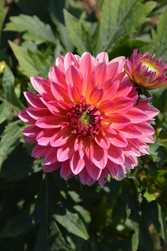 Venti™ Passion Fruit Dahlia features showy double pink daisy flowers at the ends of the stems from early to late summer. The flowers are excellent for cutting. Its pointy leaves remain dark green in color throughout the season.