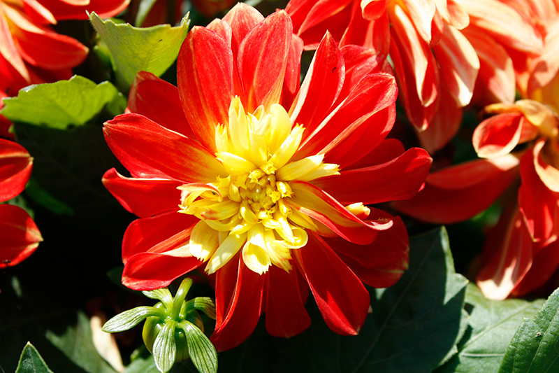 Dalaya® Fireball Dahlia will grow to be about 14 inches tall at maturity, with a spread of 14 inches. When grown in masses or used as a bedding plant, individual plants should be spaced approximately 12 inches apart. Its foliage tends to remain dense right to the ground, not requiring facer plants in front. Although it's not a true annual, this plant can be expected to behave as an annual in our climate if left outdoors over the winter, usually needing replacement the following year. As such, gardeners should take into consideration that it will perform differently than it would in its native habitat.