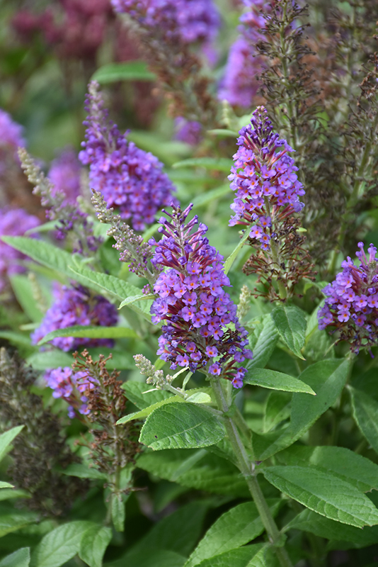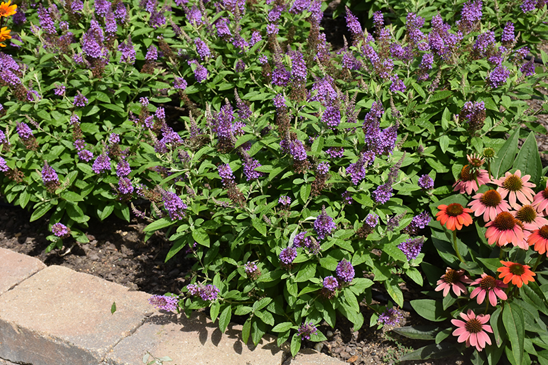 A compact selection bred for an abundance of violet-blue flowers in summer, over rich green foliage; attracts butterflies; may treat as a perennial and cut it back to the ground each spring as it regrows vigorously and blooms on new wood