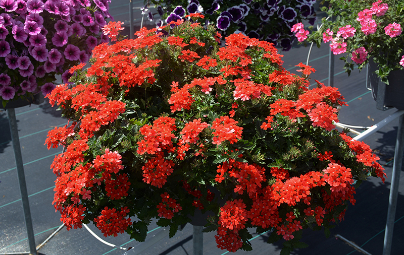Lascar™ Orange Lava Verbena is a fine choice for the garden, but it is also a good selection for planting in outdoor containers and hanging baskets. It is often used as a 'filler' in the 'spiller-thriller-filler' container combination, providing a mass of flowers against which the thriller plants stand out. Note that when growing plants in outdoor containers and baskets, they may require more frequent waterings than they would in the yard or garden.