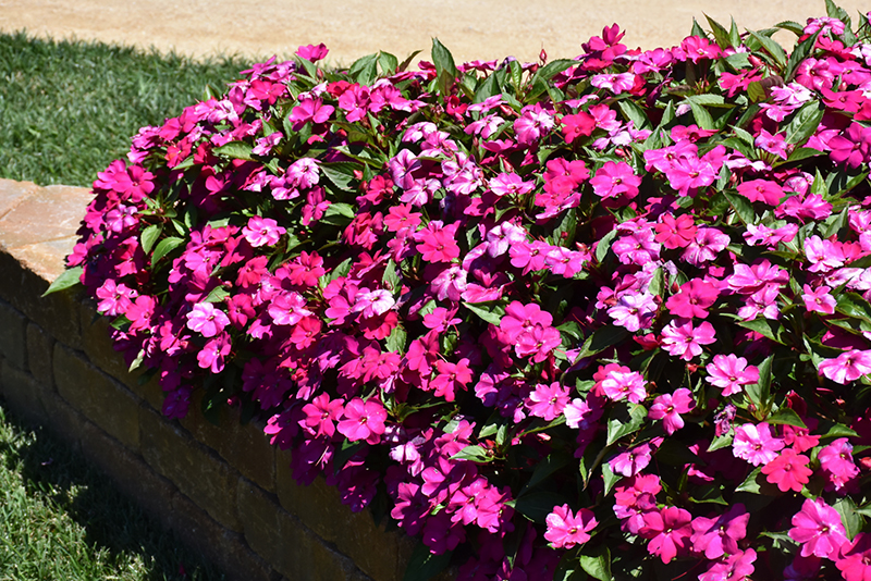 Solarscape™ Magenta Bliss Impatiens will grow to be about 9 inches tall at maturity, with a spread of 20 inches. When grown in masses or used as a bedding plant, individual plants should be spaced approximately 14 inches apart. Its foliage tends to remain low and dense right to the ground. This fast-growing annual will normally live for one full growing season, needing replacement the following year.
