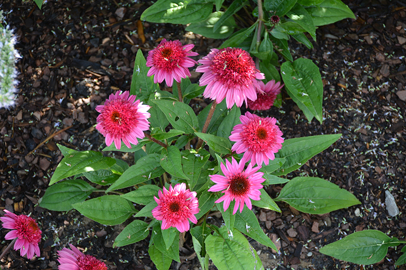 Double Scoop™ Watermelon Deluxe Coneflower will grow to be about 20 inches tall at maturity, with a spread of 20 inches. When grown in masses or used as a bedding plant, individual plants should be spaced approximately 18 inches apart. Its foliage tends to remain dense right to the ground, not requiring facer plants in front. It grows at a medium rate, and under ideal conditions can be expected to live for approximately 10 years. As an herbaceous perennial, this plant will usually die back to the crown each winter, and will regrow from the base each spring. Be careful not to disturb the crown in late winter when it may not be readily seen!