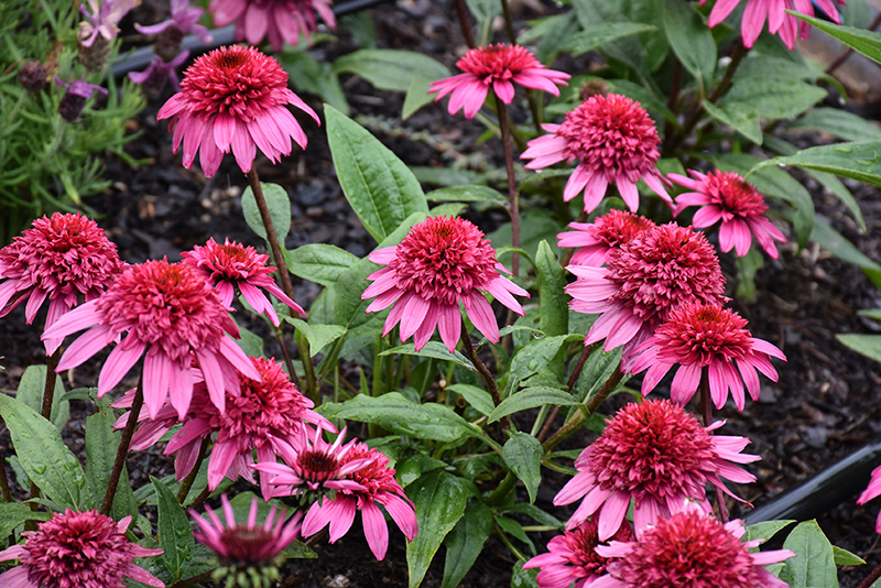Double Scoop™ Watermelon Deluxe Coneflower has masses of beautiful lightly-scented double red daisy flowers with hot pink overtones and black eyes at the ends of the stems from late spring to late summer, which are most effective when planted in groupings. The flowers are excellent for cutting. Its pointy leaves remain green in color throughout the season.