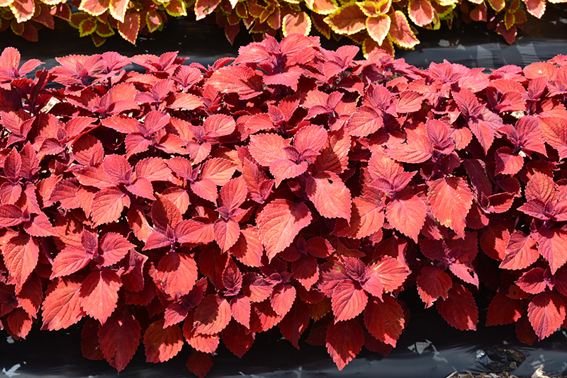 Ruby Slippers Coleus' attractive serrated pointy leaves remain ruby-red in color throughout the year on a plant with an upright spreading habit of growth.