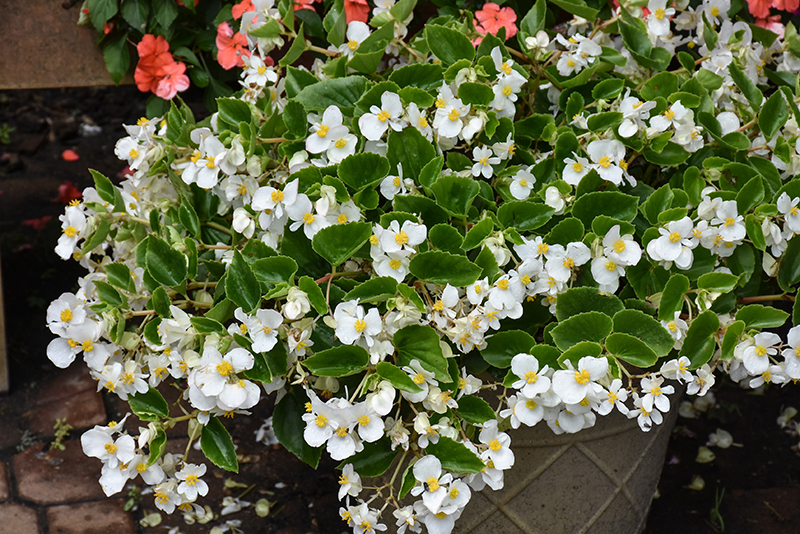 Hula™ White Begonia is a fine choice for the garden, but it is also a good selection for planting in outdoor containers and hanging baskets. Because of its spreading habit of growth, it is ideally suited for use as a 'spiller' in the 'spiller-thriller-filler' container combination; plant it near the edges where it can spill gracefully over the pot. Note that when growing plants in outdoor containers and baskets, they may require more frequent waterings than they would in the yard or garden.