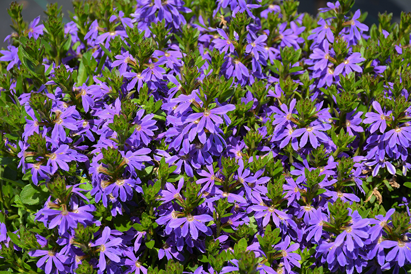 Surdiva® Blue Sky Fan Flower will grow to be about 10 inches tall at maturity, with a spread of 24 inches. When grown in masses or used as a bedding plant, individual plants should be spaced approximately 18 inches apart. Its foliage tends to remain low and dense right to the ground. This fast-growing annual will normally live for one full growing season, needing replacement the following year.