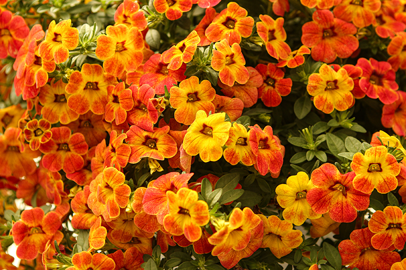 Cha-Cha™ Diva Orange Calibrachoa is blanketed in stunning orange trumpet-shaped flowers with yellow overtones at the ends of the stems from late spring to early fall. Its small pointy leaves remain green in color throughout the season.