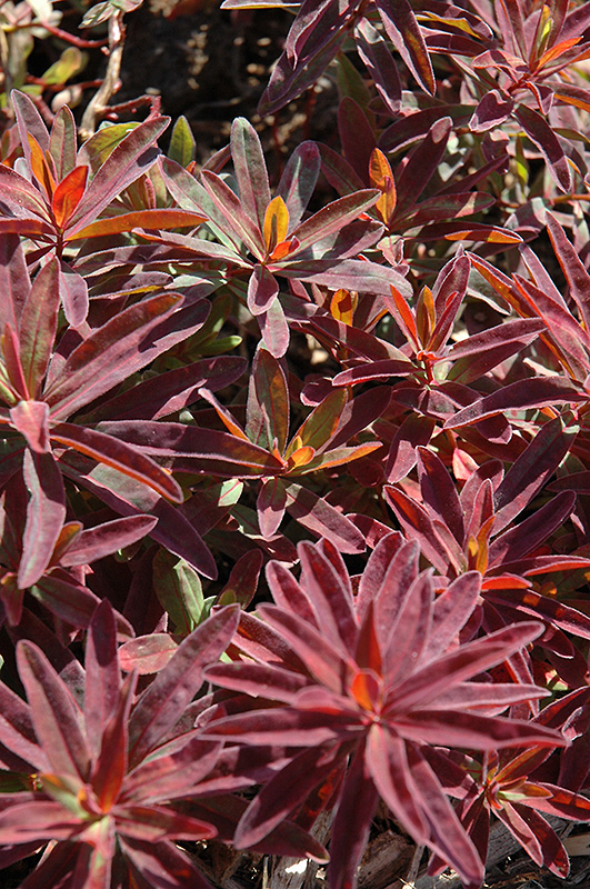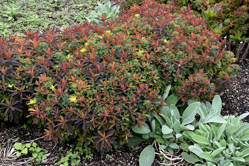 Bonfire Cushion Spurge will grow to be about 10 inches tall at maturity, with a spread of 18 inches. It grows at a medium rate, and under ideal conditions can be expected to live for approximately 10 years. As an herbaceous perennial, this plant will usually die back to the crown each winter, and will regrow from the base each spring. Be careful not to disturb the crown in late winter when it may not be readily seen!