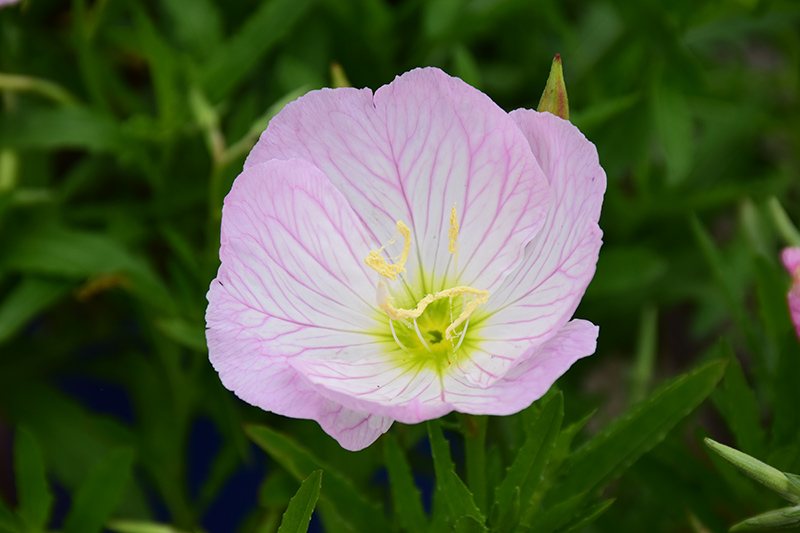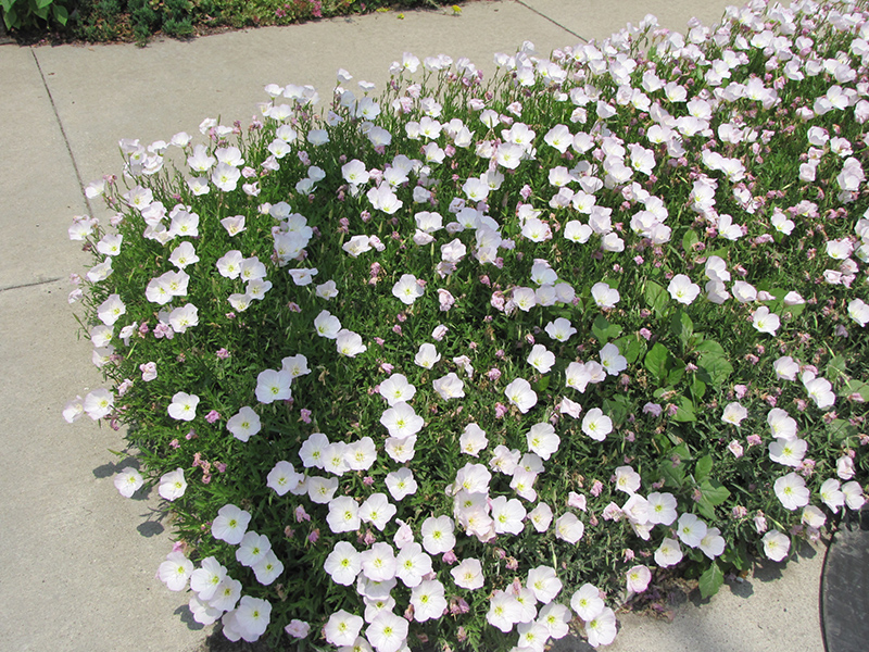 Siskiyou Mexican Evening Primrose has masses of beautiful lightly-scented shell pink cup-shaped flowers with rose overtones and yellow eyes along the stems from late spring to early fall, which are most effective when planted in groupings. Its oval leaves remain olive green in color throughout the season.