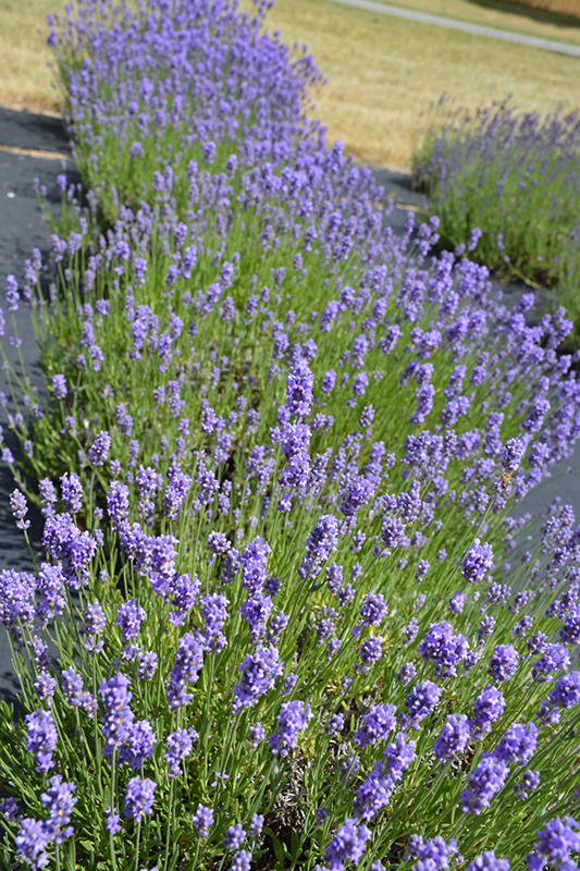 Hidcote Blue Lavender will grow to be about 15 inches tall at maturity, with a spread of 18 inches. It tends to fill out right to the ground and therefore doesn't necessarily require facer plants in front. It grows at a slow rate, and under ideal conditions can be expected to live for approximately 10 years.