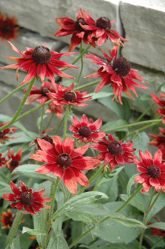 Cherry Brandy Coneflower has masses of beautiful dark red daisy flowers with dark brown eyes and burgundy centers at the ends of the stems from early summer to early fall, which are most effective when planted in groupings. The flowers are excellent for cutting. Its serrated pointy leaves remain green in color throughout the season.